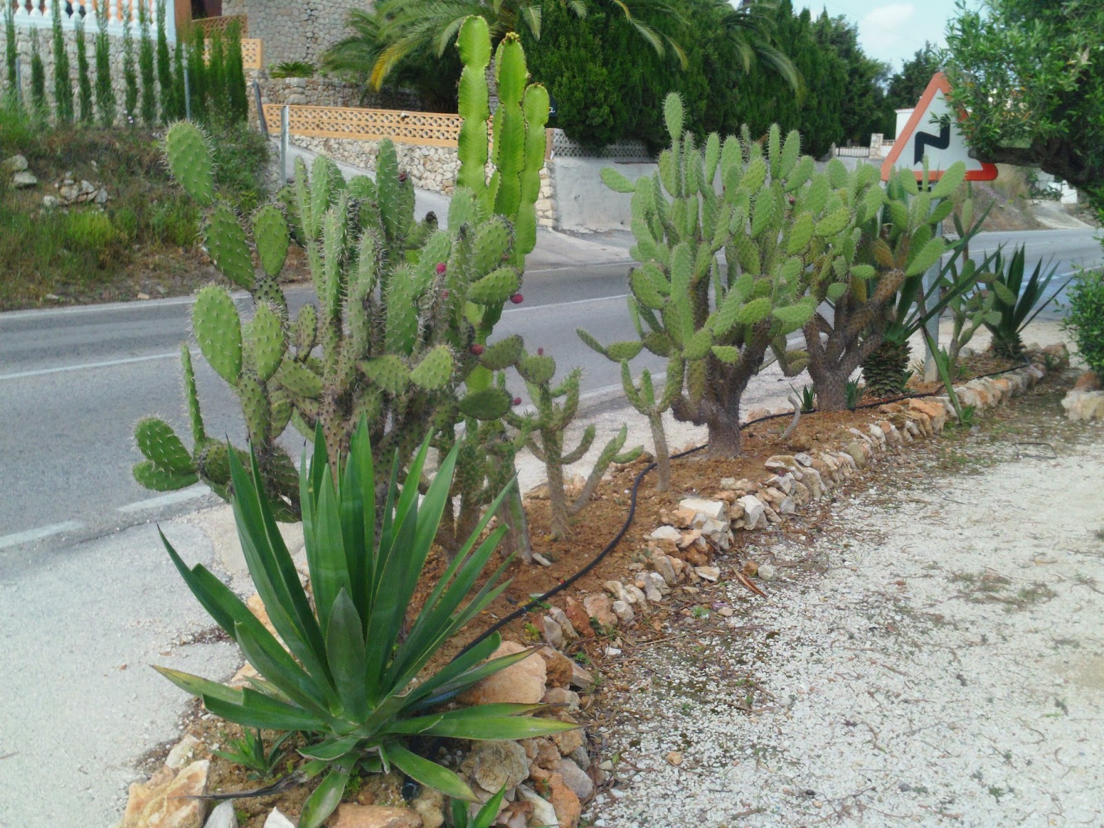 Orange trees are prevalent due to our location in the Valencian region and its long history of world class oranges.There a many types of cacti as well as century plants with a number of them growing enormous in size.